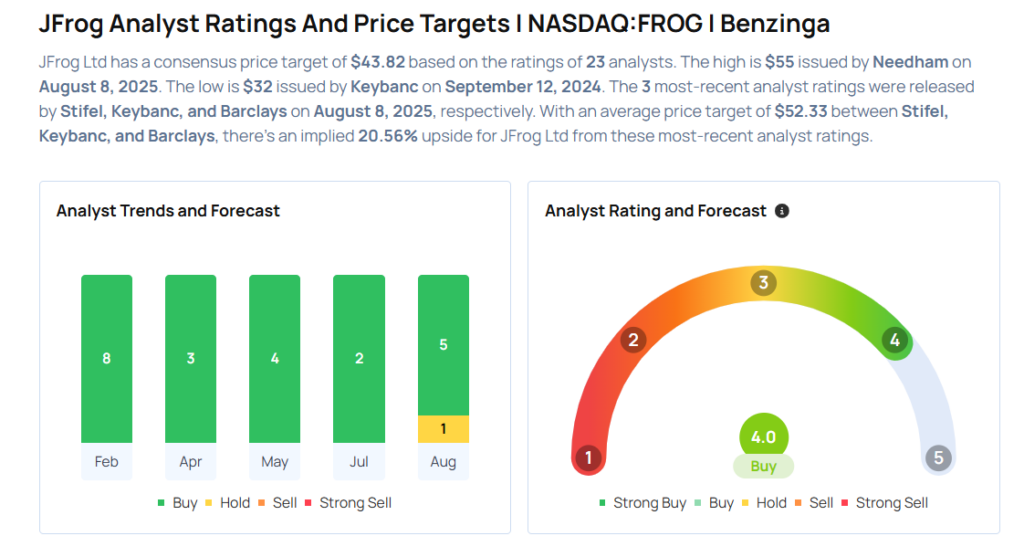 - Needham analyst Mike Cikos maintained JFrog with a Buy and raised the price target from $46 to $55.
