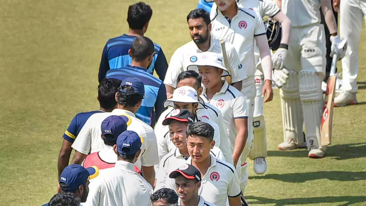 Anukul, who had been a longtime Mumbai Indians reserve, helped himself to a 153 in Jharkhand's second innings score of 417 for 6 when umpires Ganesh Charhate and Manish Jain asked players to shake hands.