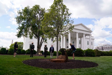 First lady Jill Biden commemorated Arbor Day by planting a linden tree on the north lawn of the White House
