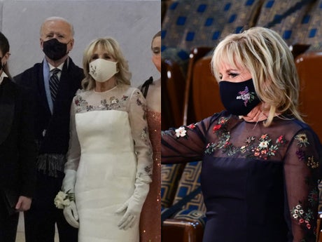 Jill Biden won fashion plaudits for wearing the same dress at Joe Biden’s speech to the joint session of Congress that she wore on inauguration night.