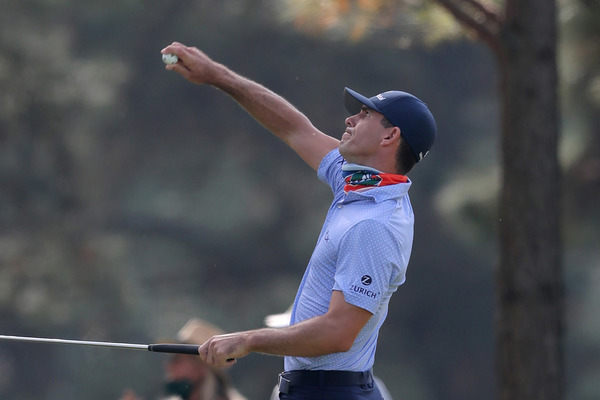 Billy Horschel almost throws his ball after making a bogey on the 7th hole during the third round of the Masters at Augusta National Golf Club on Saturday, Nov. 14, 2020, in Augusta, Georgia. (Curtis Compton/Atlanta Journal-Constitution/TNS)