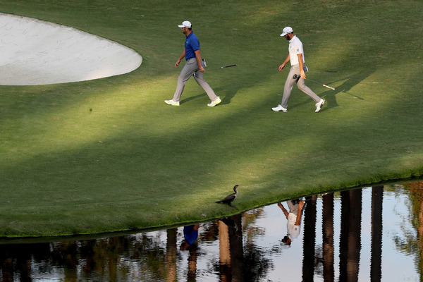 AUGUSTA, Ga. — After shooting a 65 on Saturday to take a four-shot lead at The Masters, Dustin Johnson walked up the hill from the 18th green and ... nothing happened.