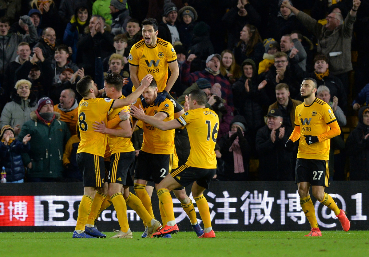 Soccer Football - Premier League - Wolverhampton Wanderers v West Ham United - Molineux Stadium, Wolverhampton, Britain - January 29, 2019 Wolverhampton Wanderers' Rui Patricio celebrates their third goal scored by Raul Jimenez (not pictured) REUTERS/Peter Powell Soccer Football - Premier League - Wolverhampton Wanderers v West Ham United - Molineux Stadium, Wolverhampton, Britain - January 29, 2019 Wolverhampton Wanderers' Raul Jimenez scores their third goal Action Images via Reuters/Craig Brough Soccer Football - Premier League - Wolverhampton Wanderers v West Ham United - Molineux Stadium, Wolverhampton, Britain - January 29, 2019 Wolverhampton Wanderers' Raul Jimenez scores their second goal REUTERS/Peter Powell