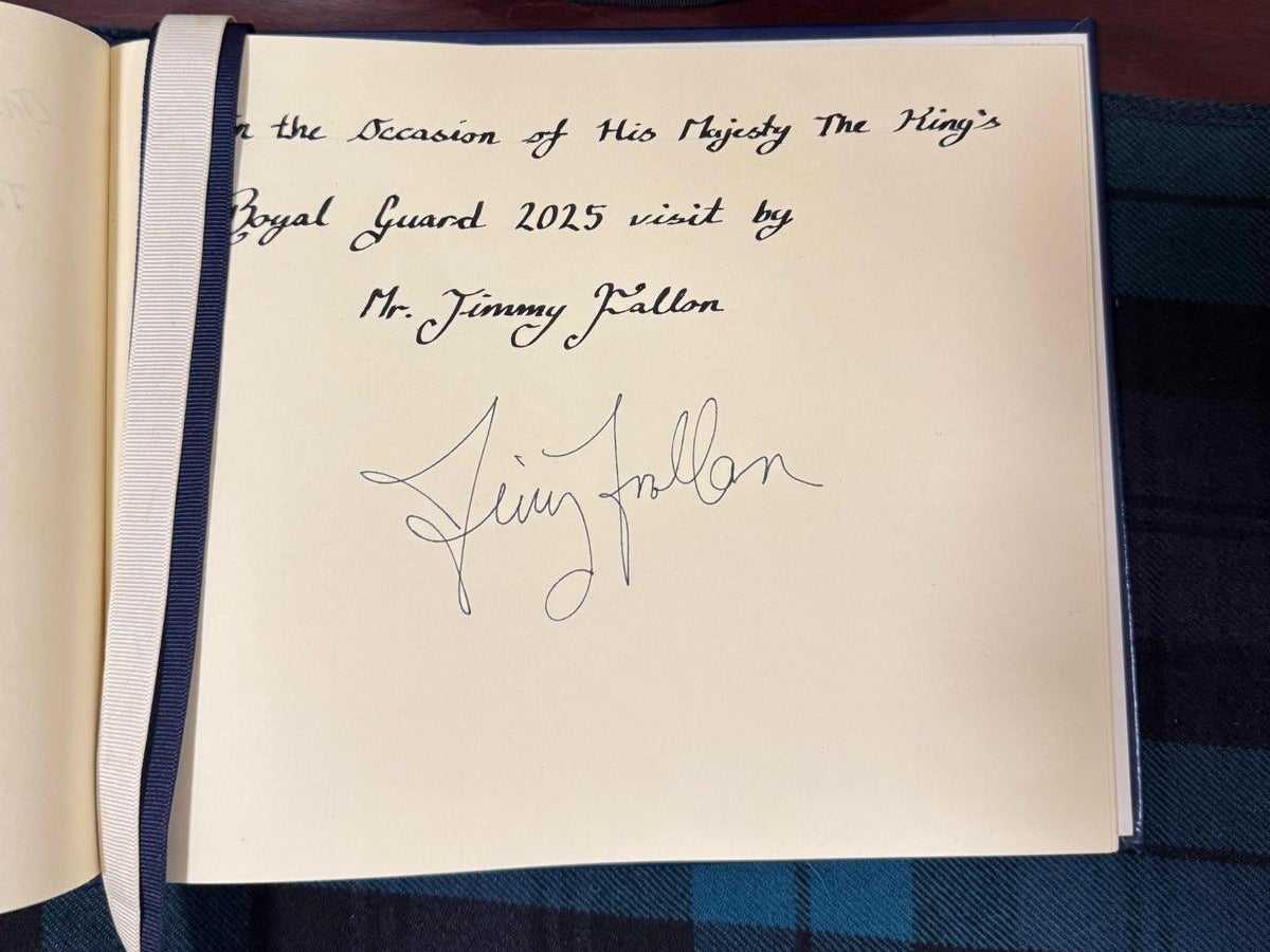 Fallon was greeted with kilts and bagpipes by soldiers from the 5th Battalion, the Royal Regiment of Scotland (5Scots) and signed the visitor’s book at Victoria Barracks in the village – a longstanding tradition for guests of honour.