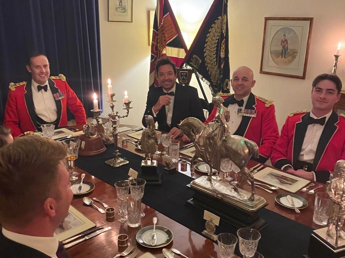 Fallon was then shown some of the equipment the soldiers use before the formal dinner, where he was served a traditional Scottish starter – a venison Scotch egg rather than the usual sausage.