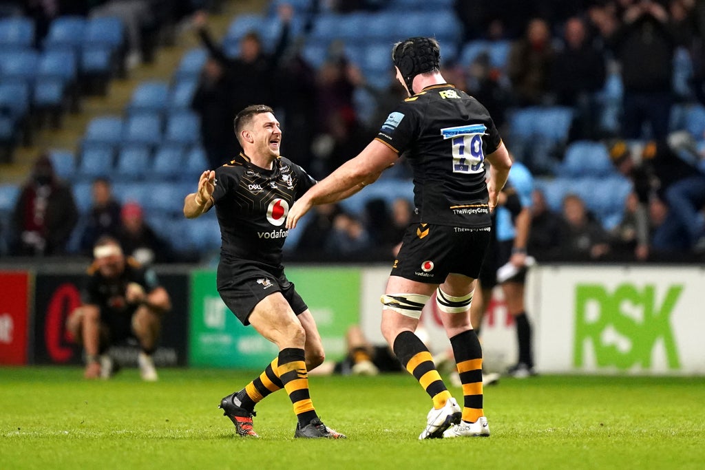 Tigers were rattled and they built up a period of huge pressure with a succession of scrums close to the hosts’ line but they could not capitalise, so Wasps just held on for a famous victory.