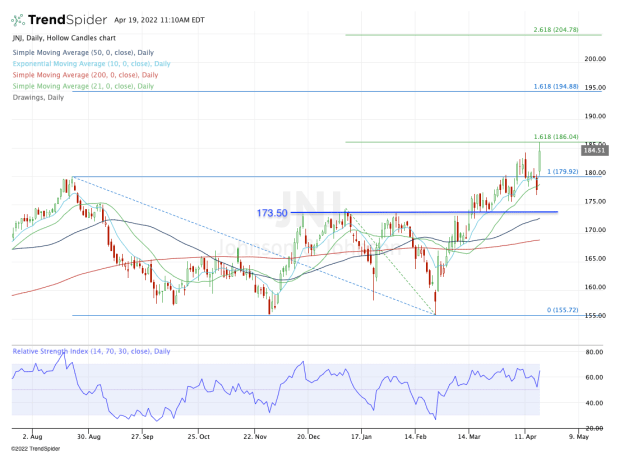 If Johnson & Johnson stock can hold up, ideally above last week’s high of $184.20, then it keeps today’s high near $186 in play.