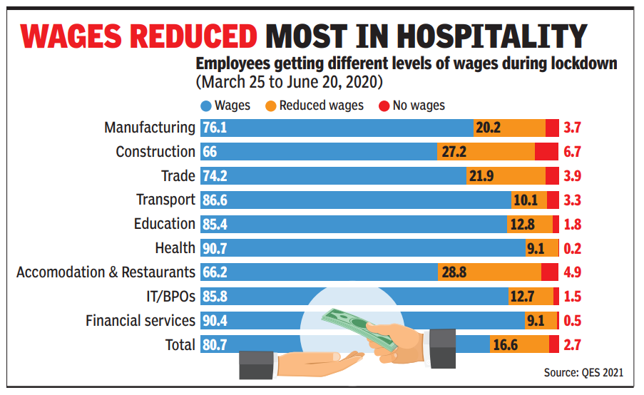 Speaking to TOI, principal adviser to the labour and employment ministry, D P S Negi said, “Total employment (between the three-month lockdown period) fell from 3.078 crore to 2.848 crore or by 24 lakh. This has been slightly more than made up during July 2020 and March 2021, making the total employment figure on April 1 as 3.08 crore.”