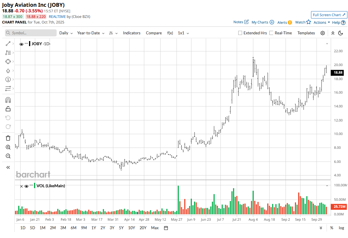 Electric air mobility is rapidly transforming from science fiction into a tangible industry, and Joby Aviation (JOBY) is leading the charge. The company’s stock has surged more than 40% in the past month and over 130% year-to-date as investors grow increasingly confident in its progress toward FAA certification and commercial readiness. Following successful demonstration flights in the U.S., Japan, and Dubai, Joby’s eVTOL technology is gaining credibility as a viable new transport platform.
