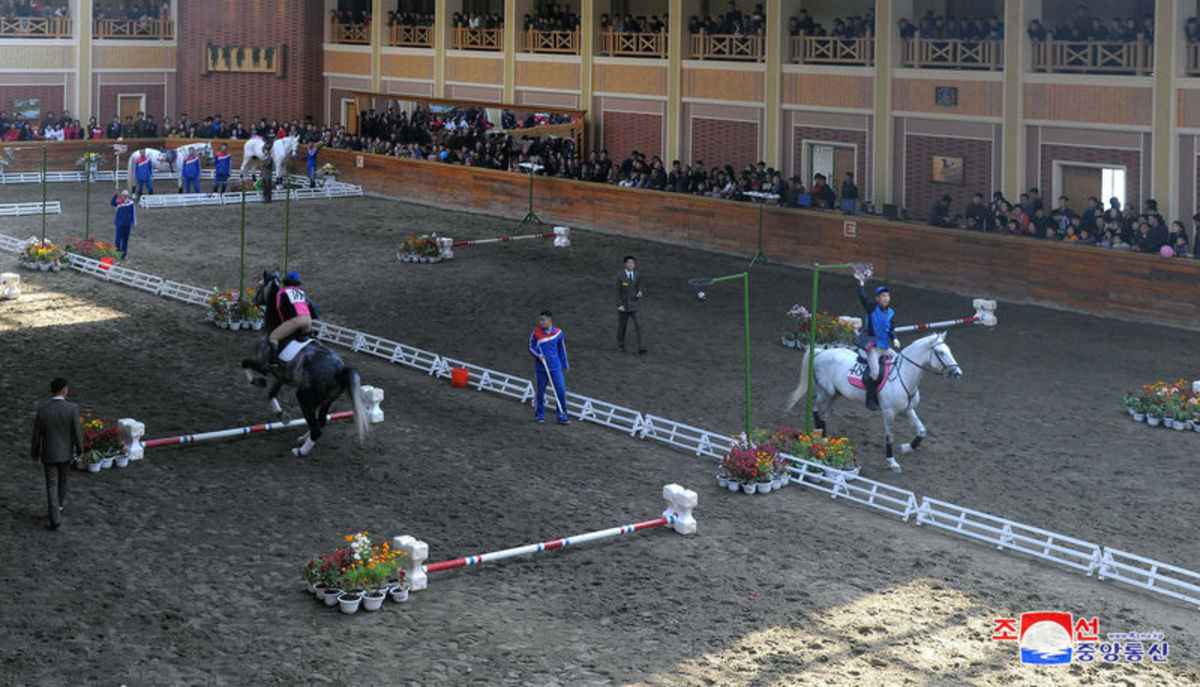 The Mirim riding club has an indoor training facility, seven outdoor riding courses, a pavilion, restaurants and a sauna, as well as 120 horses including 67 famous Orlov Trotters from Russia, according to the website of Uri Tours, a U.S.-based agency specialized in guided trips through the North.