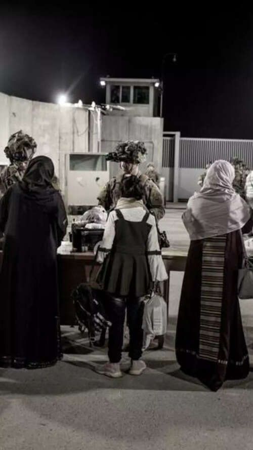 Reuters10/10:US Marines process evacuees at Hamid Karzai international airport.