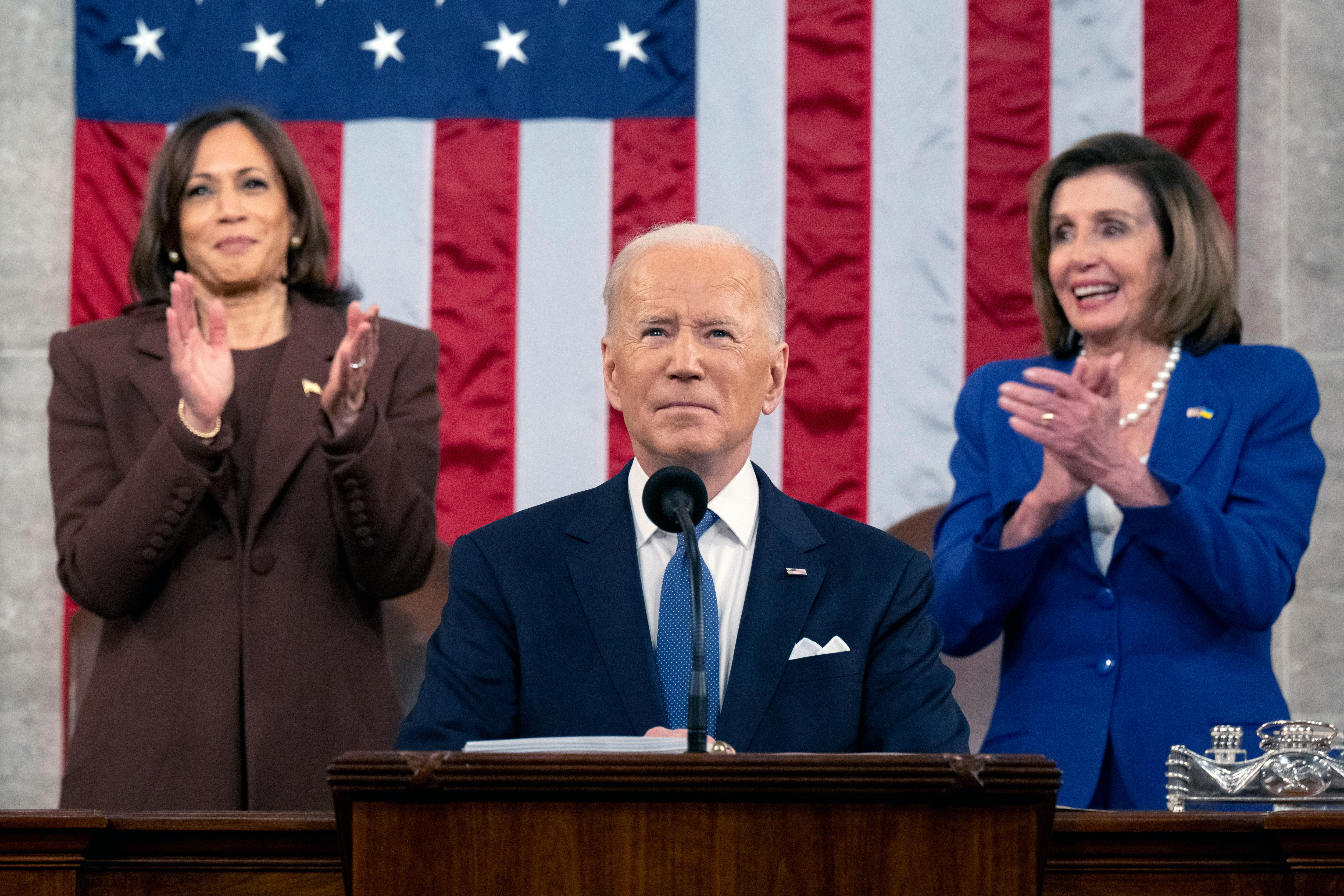 This year, the masks were largely gone and many members of Congress carried small Ukrainian flags or came dressed in blue and yellow in solidarity with the country.