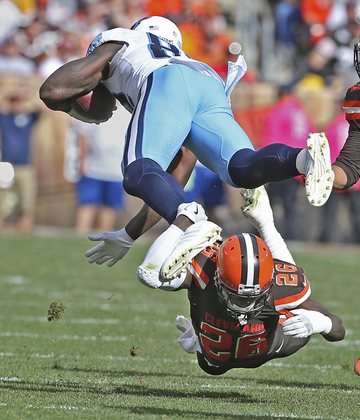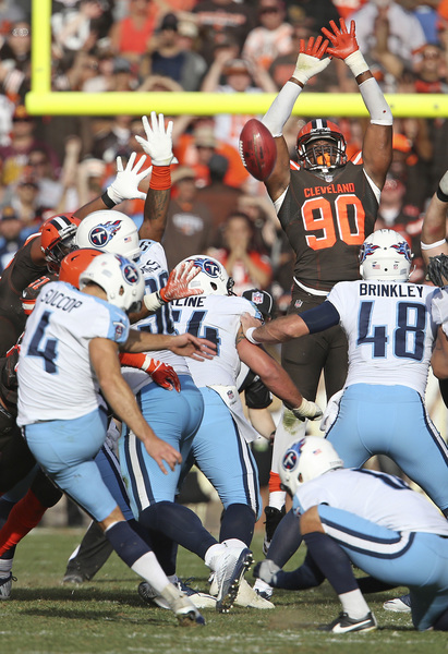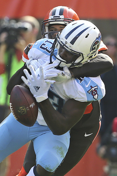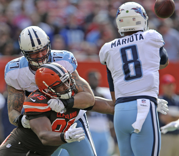 The Titans took over at their 36 after the Browns punted. They advanced to the Browns 44, and on third-and-6, cornerback Mike Jordan broke up a pass from quarterback Marcus Mariota to receiver Eric Decker, forcing the Titans to punt.