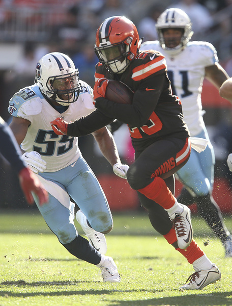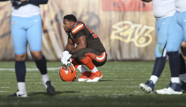 Jackson made a puzzling decision during the game's opening series. After Titans Pro Bowl left tackle Taylor Lewan was flagged for grabbing the face mask of rookie defensive end Myles Garrett on third-and-1 at the Browns 32, Jackson declined the penalty that would have made it third-and-16. Then the Titans lined up to go for it on fourth-and-1, and defensive tackle Danny Shelton jumped offside to give them an easy first down.