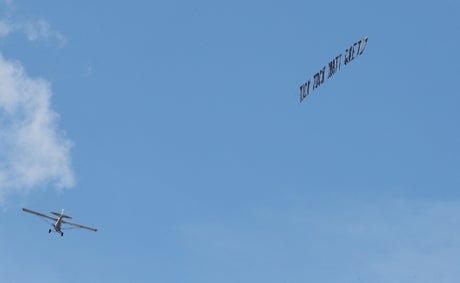 Remove Ron – a group aimed at ousting the state’s Republican Governor Ron DeSantis – hired the plane to fly the banner.