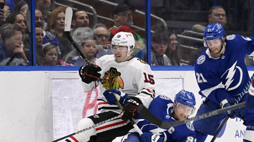 So far, he has produced a solid if unspectacular start. He entered Tuesday with one goal and one assist in his first eight Hawks games, averaging 11:19 of ice time primarily on the fourth line with Jujhar Khaira and Boris Katchouk.
