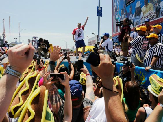 Mr Chestnut has dominated the chowdown throwdown for years, eating 70 franks and buns last year to top his then-record and take back the title from Matt “The Megatoad” Stonie. The 25-year-old Stonie came in third on Tuesday, with 48 franks and buns.