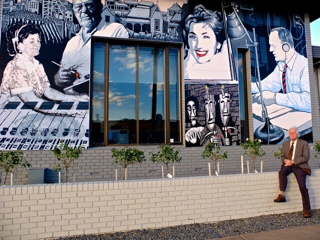A mural of the moment he read the news from the Broken Hill Telephone Exchange can still be seen on the side of the Broken Hill ABC regional station today.