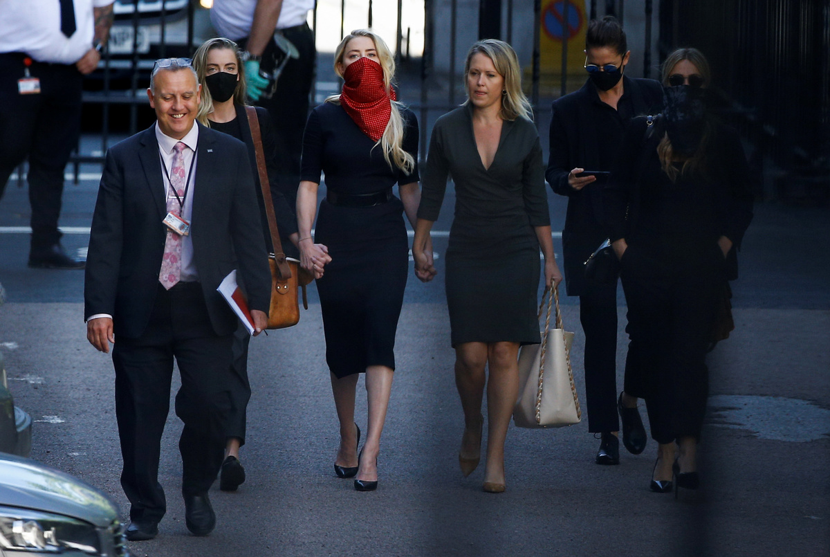 Depp and Heard were pictured arriving separately at the court on Tuesday with Depp wearing sunglasses and a dark scarf around his face while Heard walked in, holding the hands of two women, wearing a red scarf around her face.