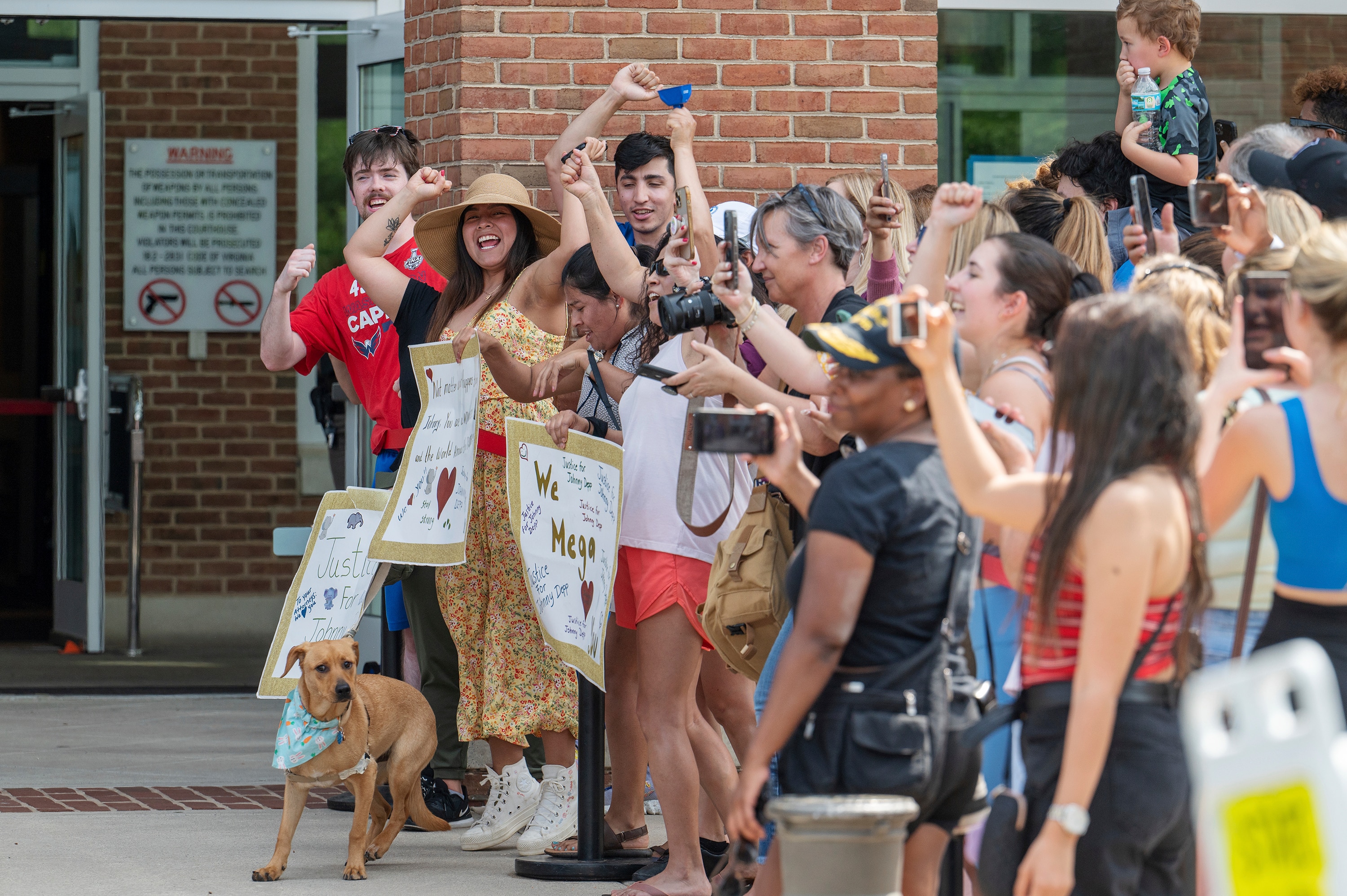 Spectators who could not get in lined up on the street to cheer Mr Depp and jeer Ms Heard whenever either appeared outside.