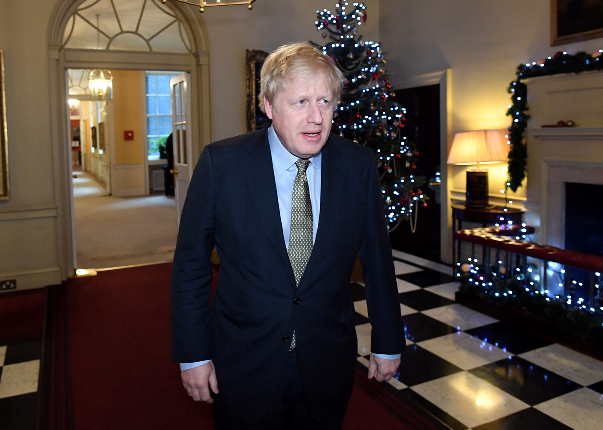 After his crushing election victory, Johnson said "all those miserable threats" of a second referendum were over. He told one protester - who wears a hat with the blue and gold flag of the EU and yells "stop Brexit" at politicians outside parliament - that it was time to retire.