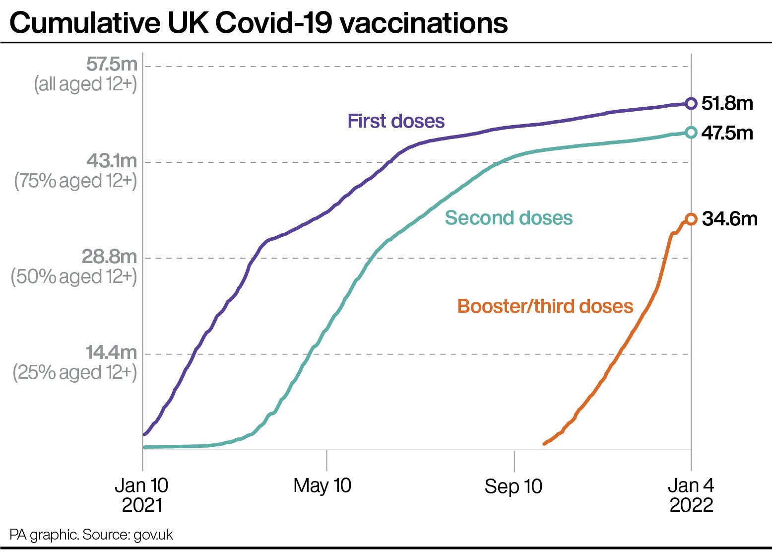 Government figures also showed a total of 17,276 people were in hospital in the UK with Covid-19 as of January 4, up 58% week-on-week – although far below the peak of almost 40,000 in January 2021.