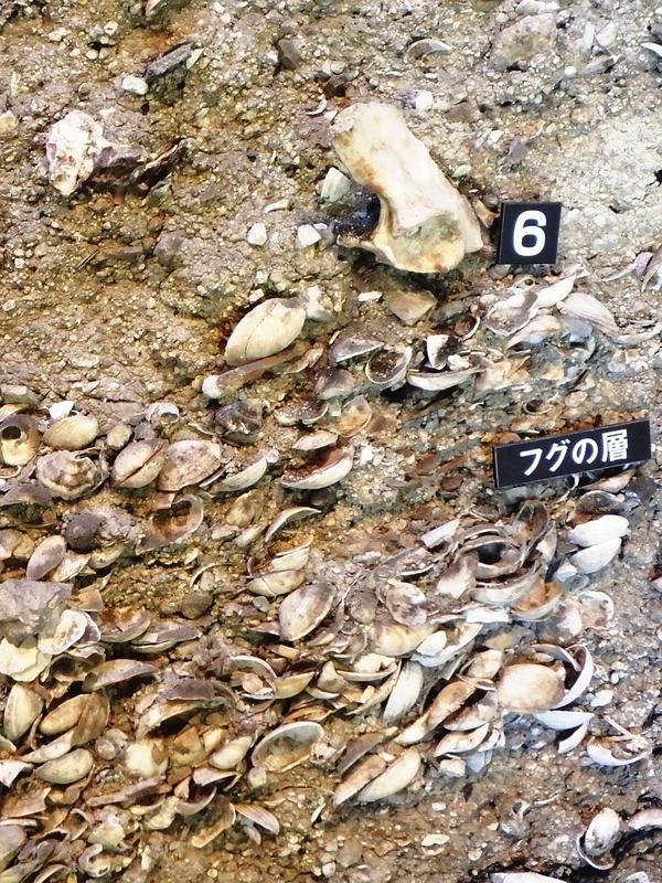 The cross section of a shell midden layer from about 2,800 years ago caught my eye at the Kaiso Kansatsukan museum at the Satohama Historical Park. I could see not only shells and stone tools, but also the bones of humans and dogs. The shell midden served as the grave of every object and living thing, where people gave thanks for natural blessings and tools, and paid homage to ancestral spirits.