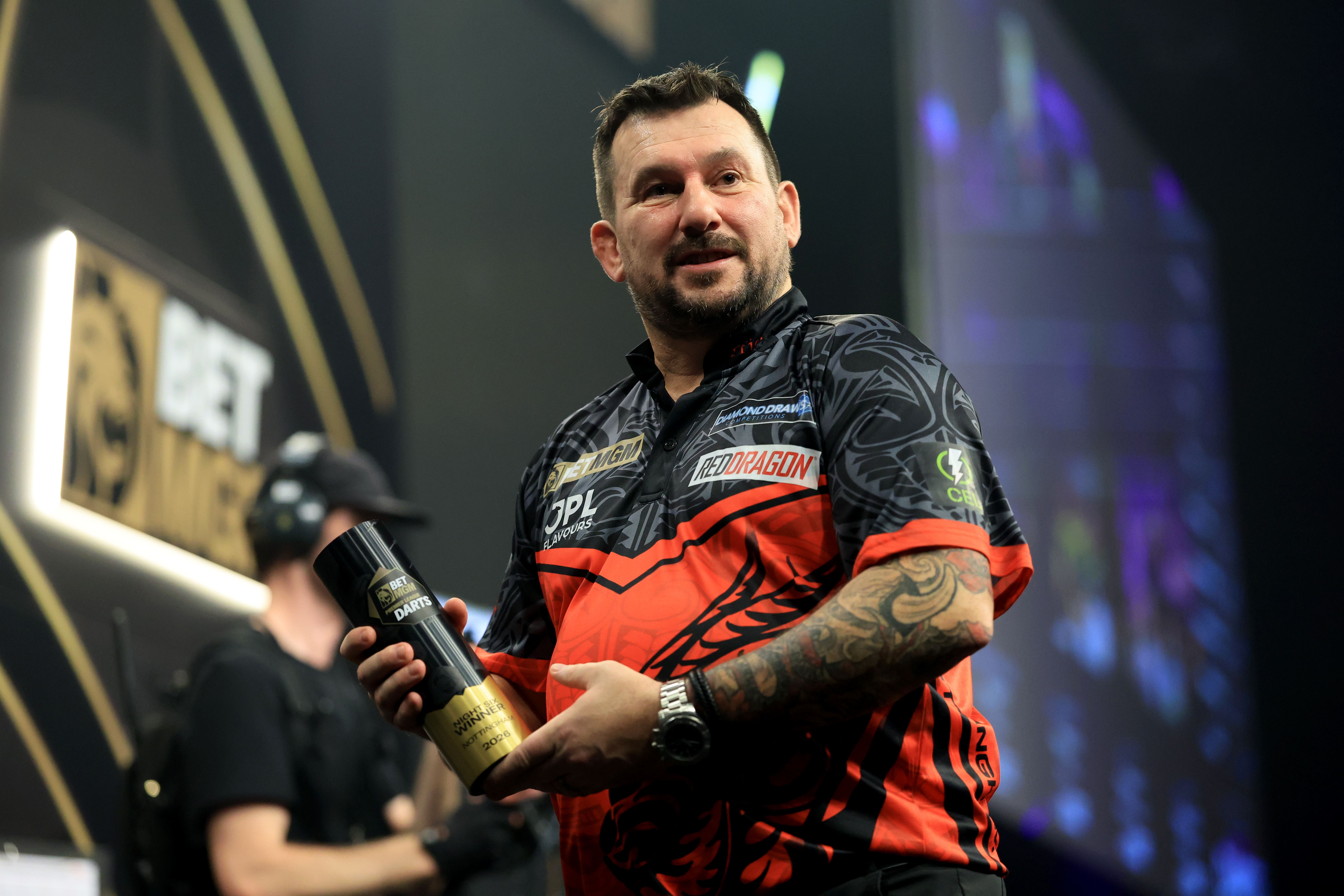 Jonny Clayton overcomes gout to win Premier League night six in Nottingham