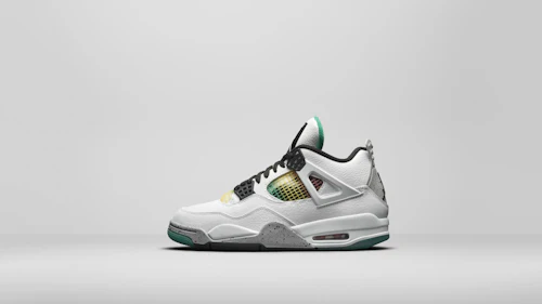 Getting the most love is the Air Jordan 4, which will arrive in five iterations. One, for women, features heralded cement detailing, as well as a red, blue, and green gradient on the netting. The four others are all-white with just a hint of purple, red, green, and orange. Jordan purists may not be fans, but the subtle splash of color should make for an easily wearable shoe.