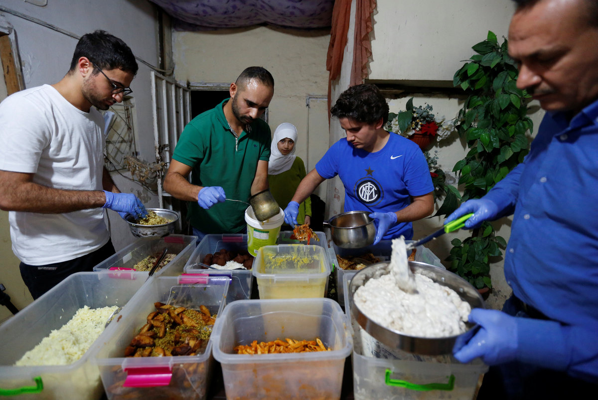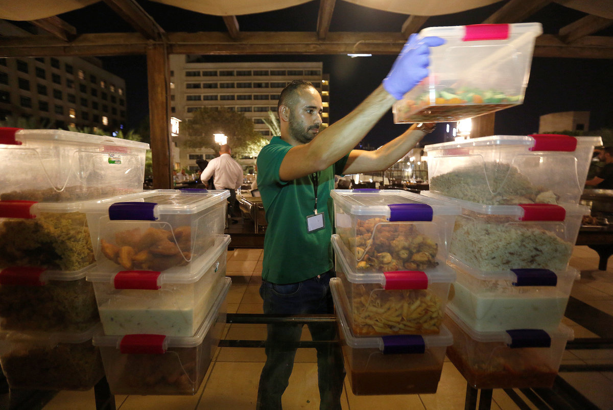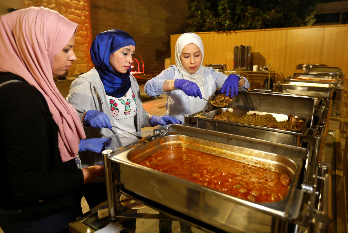 AMMAN (Reuters) - At the end of a lavish Ramadan buffet in the banquet hall of one of Amman's five-star hotels, a young Jordanian charity worker rushes to gather up left-over food that his team of volunteers will package and redistribute to needy families.