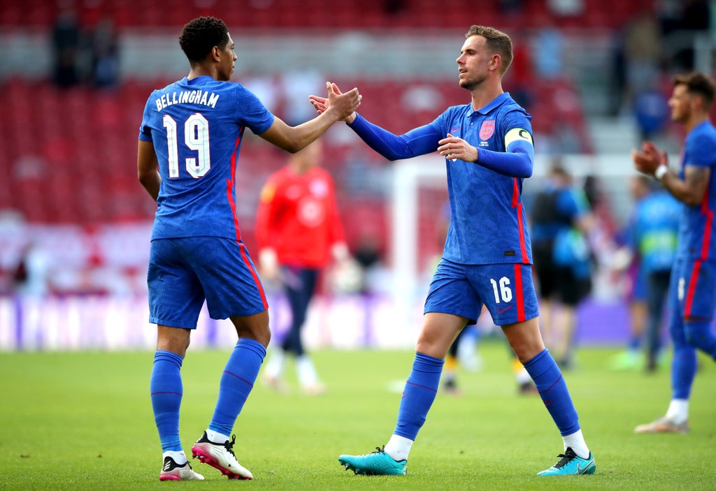 While Liverpool captain Henderson skippered the Three Lions, Bellingham – 13 years his junior – was collecting just his eighth senior cap.