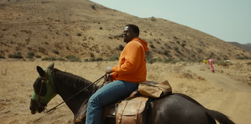 But it is his sister Emerald (Keke Palmer) who notices that Ghost, one of their family’s veteran equine actors, is unexpectedly standing in an outdoor pen staring out into space, his light grey fur as sublime as the moonlight. Ghost jumps the fence and gallops away, saying “nope” in his own way.