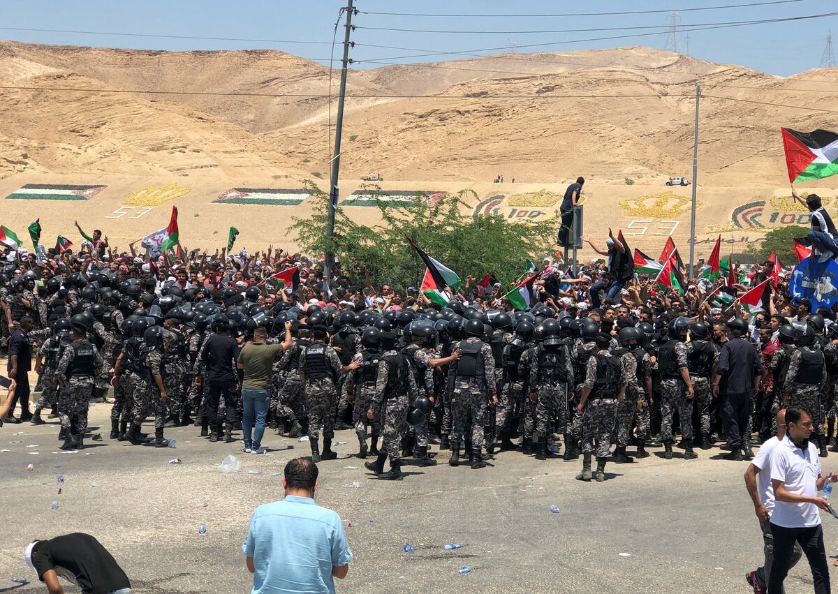 The demonstrators were within five km (three miles) of the King Hussein Bridge, known in Israel as the Allenby Bridge, in the Jordan Valley opposite the Palestinian city of Jericho in the Israeli-occupied West Bank.