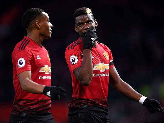 Pogba scored United's first after collecting the rebound from his missed penalty before Anthony Martial added a second with a curling strike from outside the box.