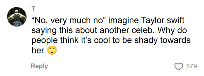 “Yes, a simple no is enough, I feel like hating Taylor Swift is a whole personality,” another user said.