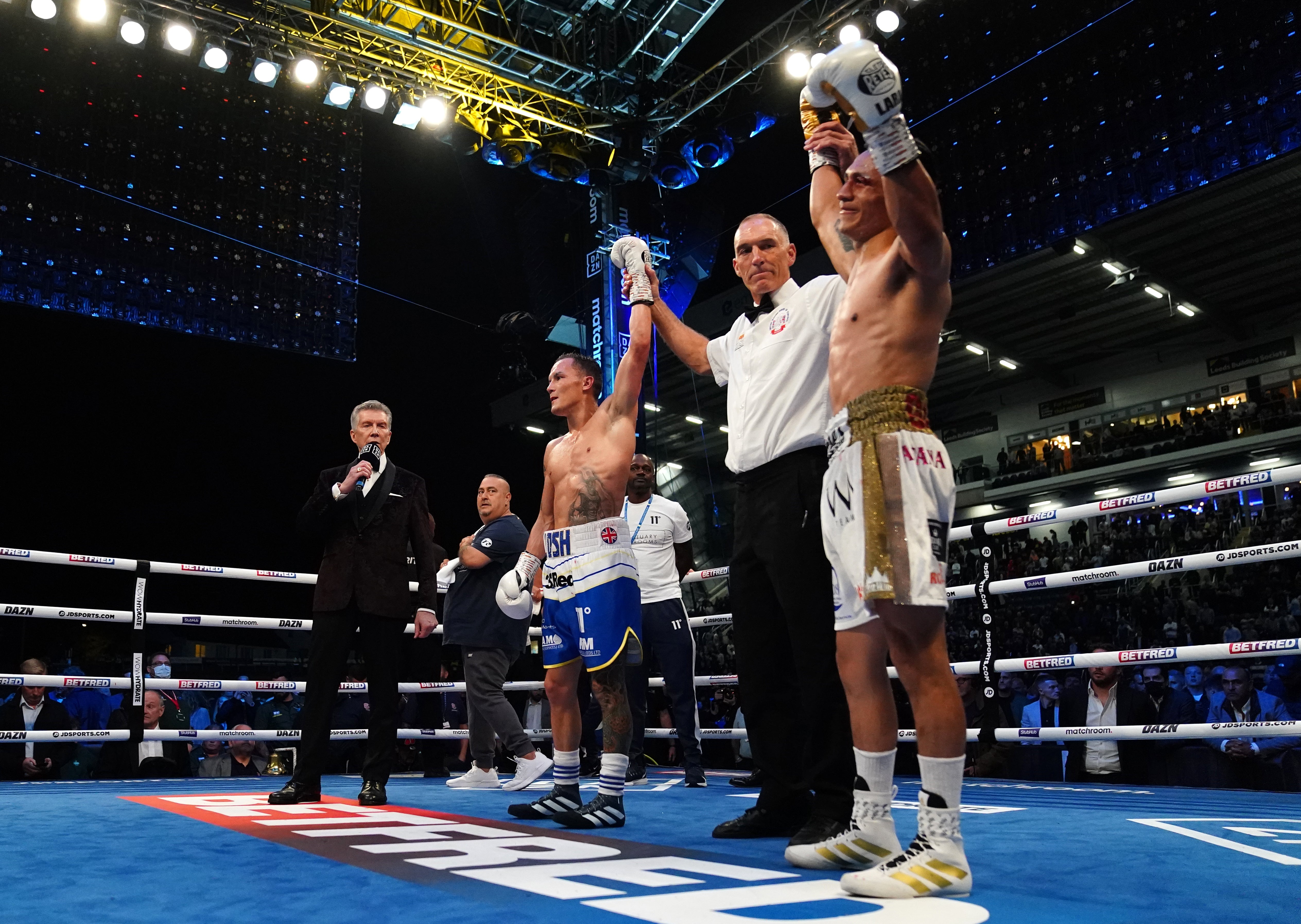 Warrington’s eagerness was evident in a first round in which he landed by far the cleaner work, but Lara had already begun complaining to referee Steve Gray about his opponent’s alleged use of the head.