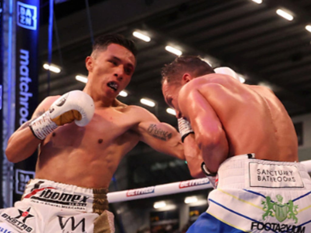 Warrington opened an injury around Lara’s left eye via an accidental head-butt, and the Mexican was deemed unfit to continue by the ringside doctor.