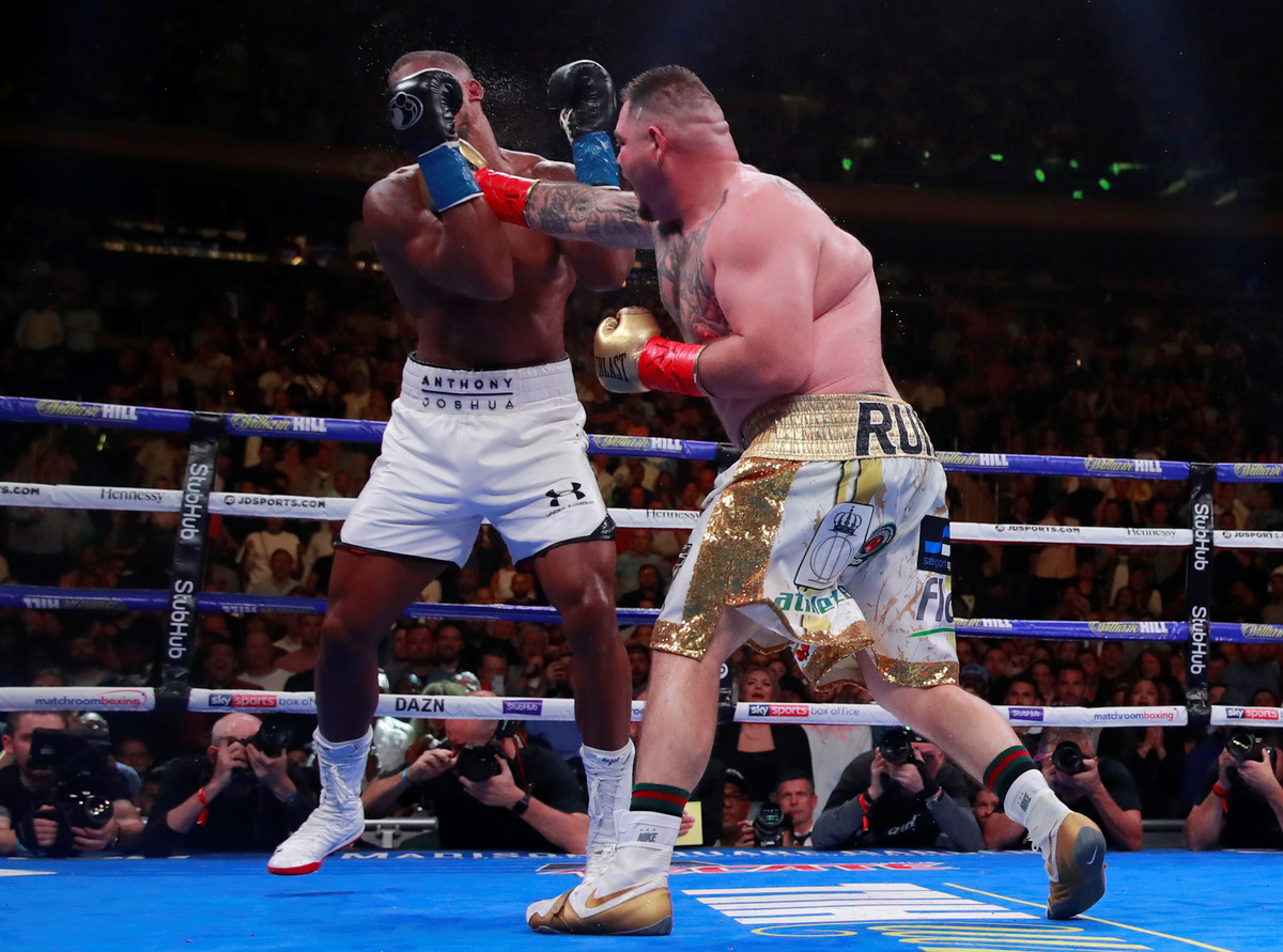 FILE PHOTO: Boxing - Anthony Joshua v Andy Ruiz Jr - WBA Super, IBF, WBO & IBO World Heavyweight Titles - Madison Square Garden, New York, United States - June 1, 2019 Anthony Joshua knocks down Andy Ruiz Jr Action Images via Reuters/Andrew Couldridge