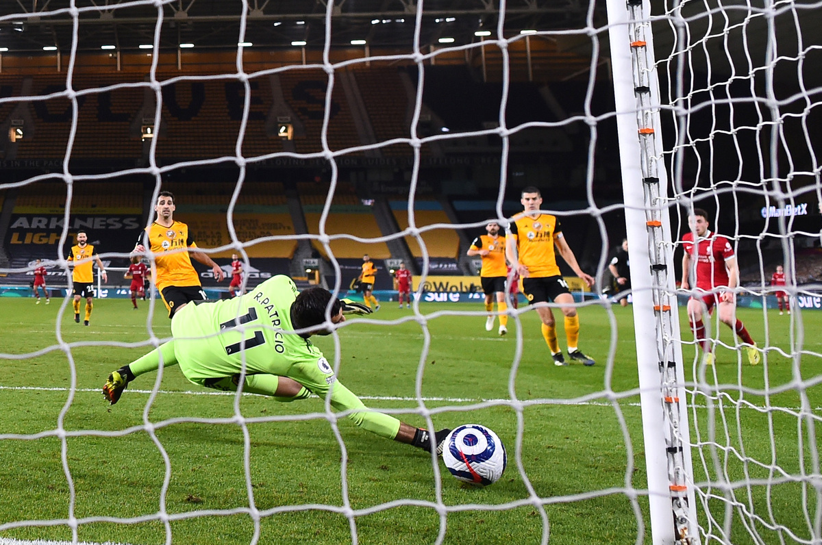 Liverpool stayed in the hunt for a top-four Premier League finish with a 1-0 win at Wolverhampton Wanderers on Monday but the match was marred by a serious-looking head injury to the home team's goalkeeper Rui Patricio.