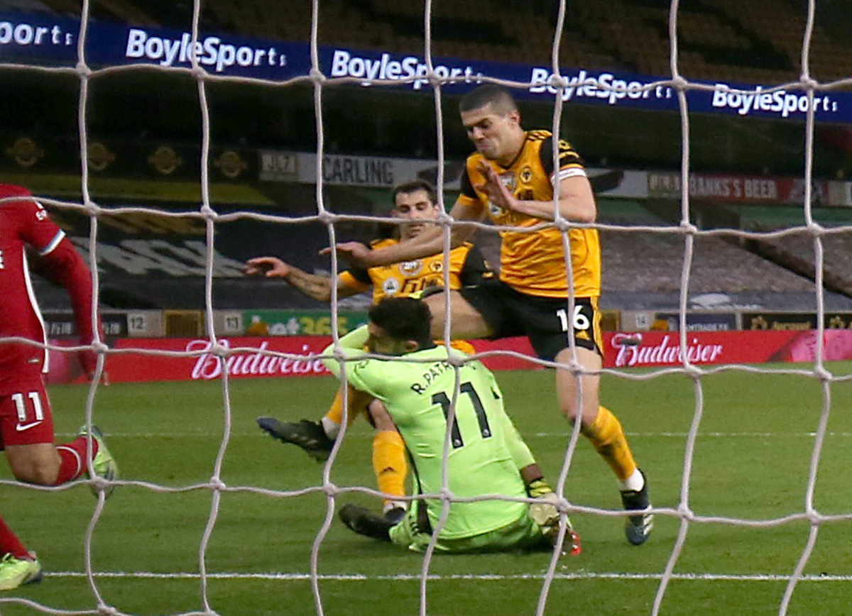 Coady headed over the bar for Wolves from a good position in the 49th minute and Patricio tipped away a Salah shot from a tight angle at the other end before his horrific collision with Coady on the edge of the six-yard box.