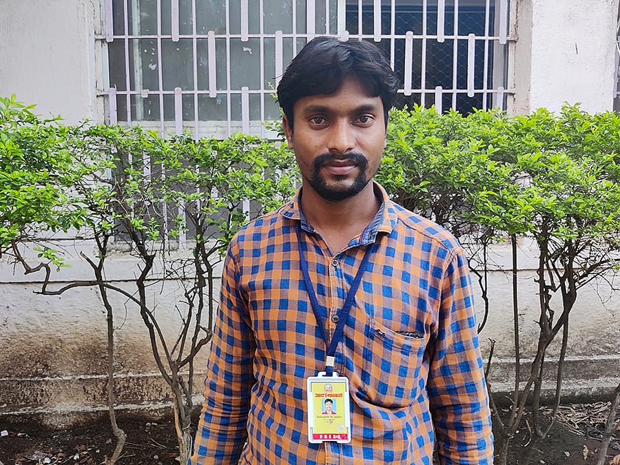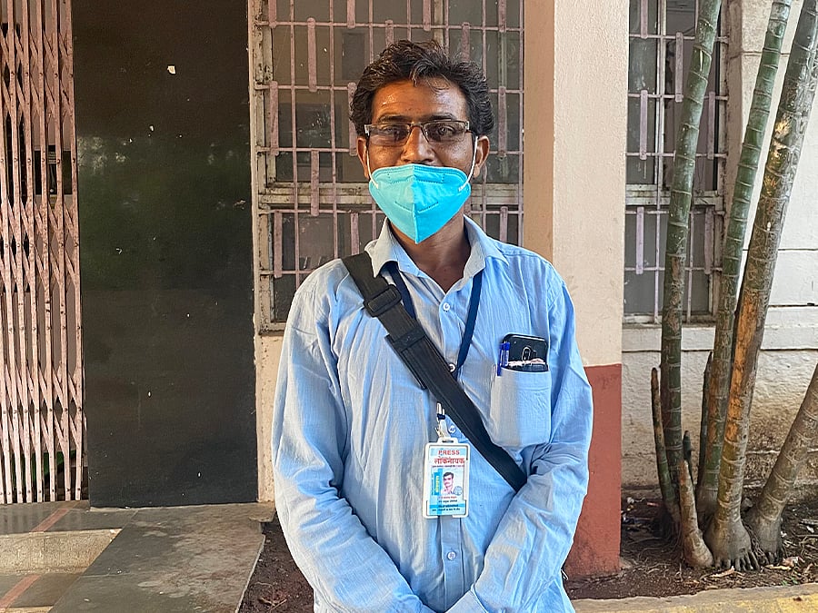 Gautam Bachute, 40, who works for the Marathi daily Pudhari, pulled up outside a temple in Dhakephal village, Kaij, on a bike borrowed from a local police inspector, one of the many public servants, politicians and social workers in his extensive network. He is facing a grim financial situation, despite this network. With no regular ads to book for his paper and no side job, Gautam has had to borrow money from friends to support his family of four.