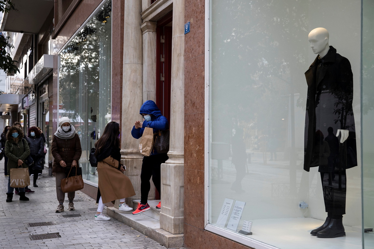 In Ermou, one of Athens' main shopping streets, people formed long queues outside stores and boutiques that imposed strict social-distancing limits inside. But businesses were also worried about the long-term economic fallout from the crisis.