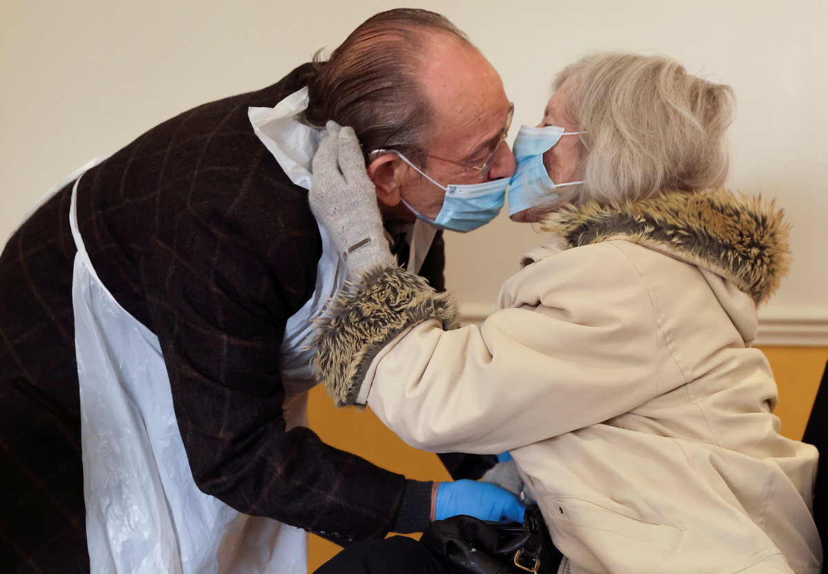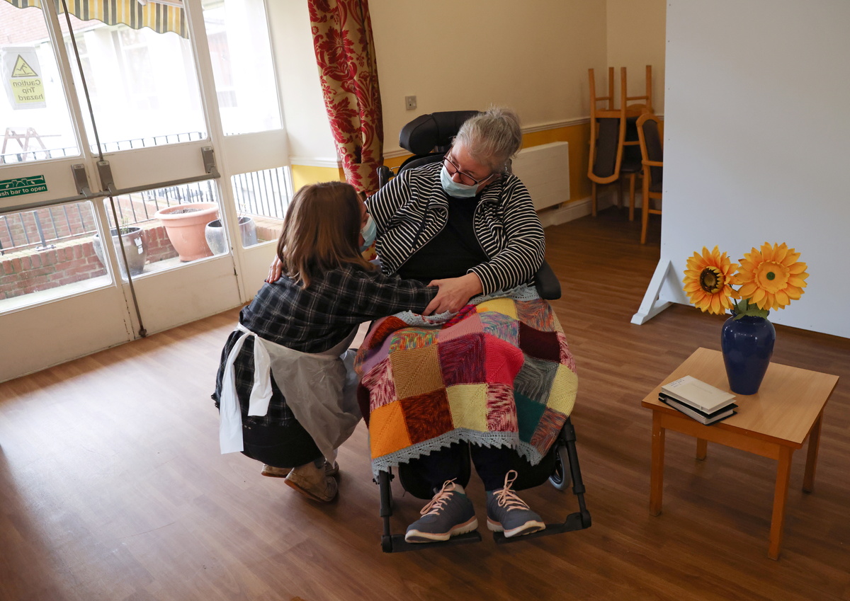 Residents of Britain's care homes shared their first precious hugs and kisses with relatives since March on Wednesday, after homes were able to give visitors rapid tests for COVID-19 which give results in 30 minutes.