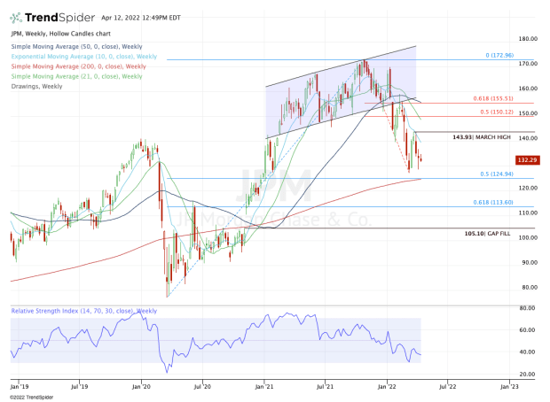 If JPMorgan stock opens near $125, aggressive bulls may find it as a worthwhile long position looking for a possible bounce.
