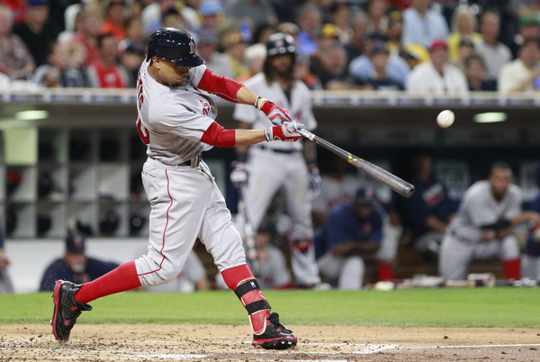 Friday night against the Angels, Betts fought off a nasty 2-and-2, down-and-away slider from Ricky Nolasco and drove an RBI single to left.