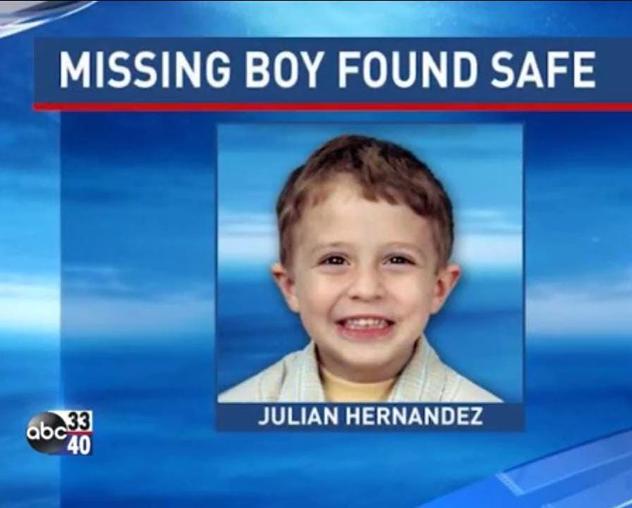 Julian Hernandez, who disappeared in Birmingham, Alabama, was found living more than 700 miles away in Ohio.