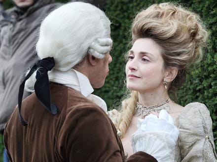 Ms Gayet plays an actress called Julie Gayet, who has to film love scenes in 18th-century costume with an actor whom she detests.