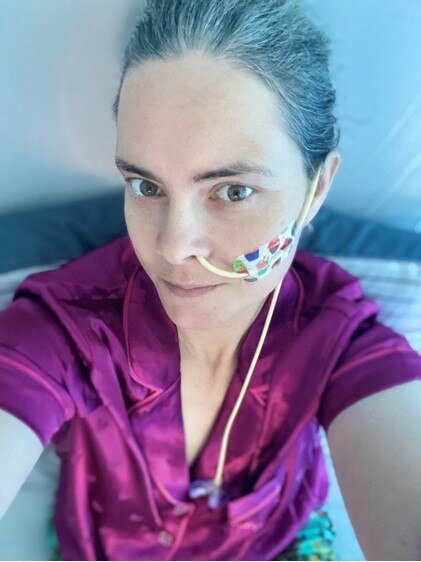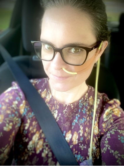 "I took a photo of myself with my tube in the car and sent them all a Teams message to just say, 'Hey, next time you see me, I will look a little bit different. Here's me with a tube on my face. But please don't worry, it's a really positive step'."