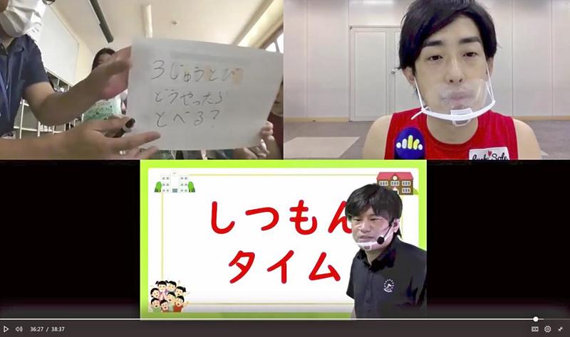 Guinness World Records jump roper Hijiki Ikuyama also lends his efforts to online classes. In early August, he appeared in an online program provided by Sumitomo Life Insurance Co. and Houkago NPO Afterschool, a nonprofit organization in Tokyo, linking a conference room in Tokyo to a children's facility in Kawasaki. Ikuyama in the program performed a quadruple jump and advised each of the children on techniques such as how to hold the rope and turn their arms.