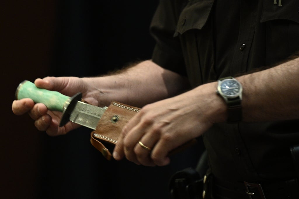 Jurors were shown a knife that Ms Heard gave Mr Depp as a gift back in 2012 as the Pirates of the Caribbean actor’s attorney questioned why she would give a weapon to her husband at a time when he was already allegedly abusing her.